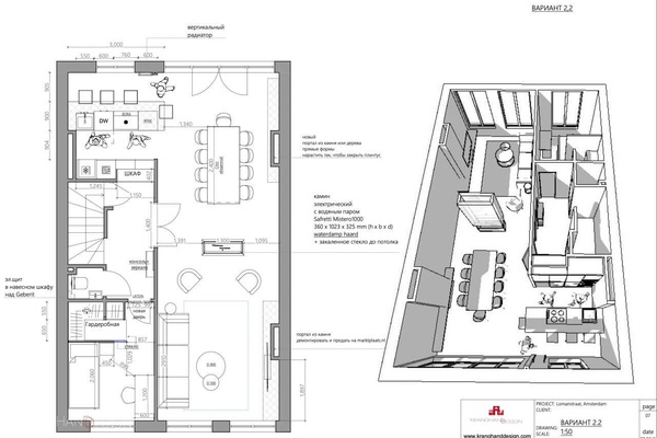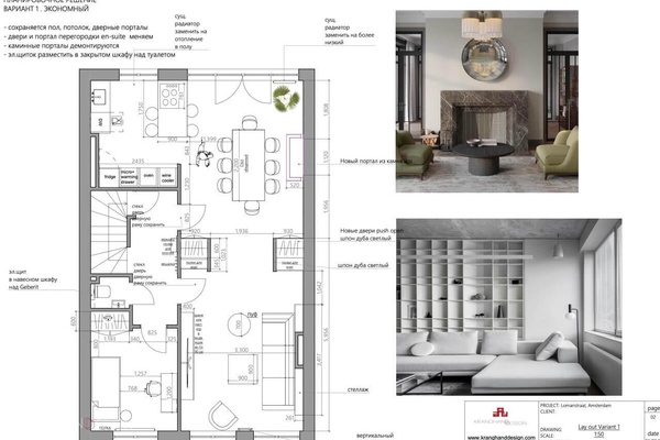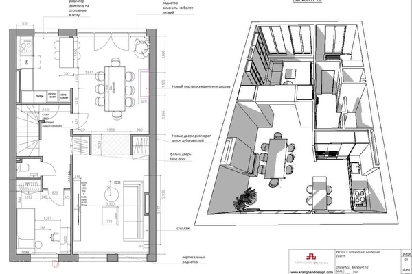 Om plaats te bieden aan een grote tv, hebben we het openhaardportaal opgeofferd. Het tweede haardportaal was bekleed met travertijn. De tweede deur naar de woonkamer werd verwijderd om plaats te bieden aan een ruime bank. Ook de vensterbank werd bij het ontwerp betrokken. Ze maakten er een gezellige plek van om te ontspannen bij het raam en verborgen de radiator.