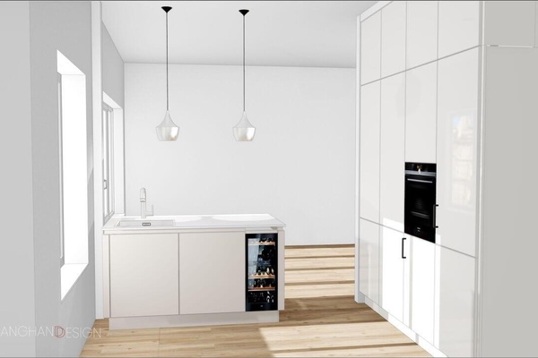 Het resultaat was een samensmelting van tijdloze stijlen, waar modern en klassiek elkaar omarmden. Het appartement straalde een serene rust uit, dankzij de overvloed aan witte tinten die door de ruimte dansten. De klant was verheugd dat al hun wensen in vervulling waren gegaan, en het appartement was getransformeerd tot een droomhuis waar elk gezinslid zijn eigen stempel kon drukken op dit nieuwe, gedeelde hoofdstuk van hun leven.