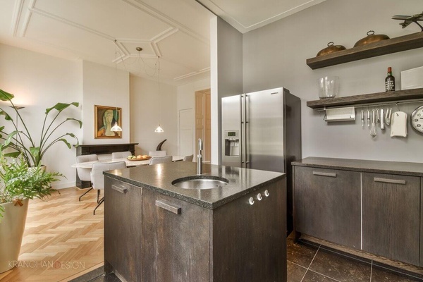 Mijn eerste uitdaging was het herindelen van de ruimte om te voorzien in de behoeften van een groeiend gezin. Voldoende kastruimte werd een prioriteit, en de keuken moest niet alleen ergonomisch zijn, maar ook een centraal punt vormen voor gezellige familiemomenten. Een imposant kookeiland werd het kloppende hart van deze ruimte, waar gastronomische creaties en dierbare herinneringen hand in hand zouden gaan.