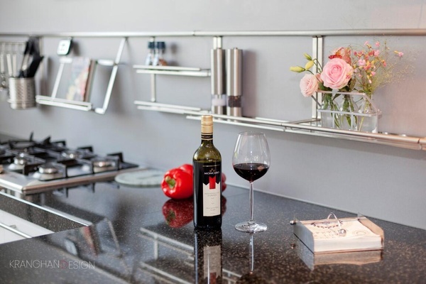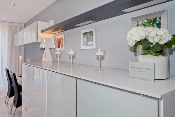 Kitchen.Apart of the wall was removed making an open kitchen with a peninsula bar table possible.Large granite countertop, high cupboards with built in appliances incl. 2 ovens, microwave, and a warmer drawer.It keeps food evenly warm.