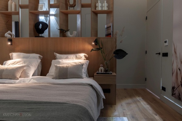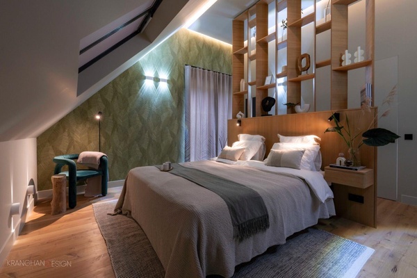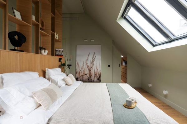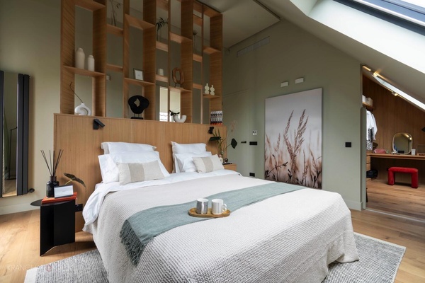 РОДИТЕЛЬСКАЯ СПАЛЬНЯ В ЭКО СТИЛЕ С МАСТЕР-ВАННОЙ И ХАМАМОМ НА МАНСАРДЕ