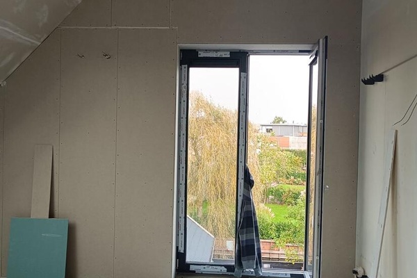 Для улучшения циркуляции воздуха я увеличила мансардные окна и добавила окна в пол с французским балконом, используя тройные стеклопакеты. Это решение добавило естественный свет и открыло прекрасный вид, позволяя заказчикам засыпать под звёздным небом и просыпаться под лучами солнца. Дополнительные окна в ванной улучшили естественную вентиляцию и сделали помещение более просторным. Мы использовали старые мансардные окна из спальни, бережно демонтировав их и покрыв лаком в цвет французских окон, что позволило сэкономить бюджет и сохранить экологичность проекта.