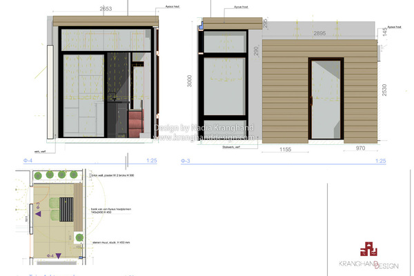 - De achtergevels zijn bekleed met thermisch gemodificeerd hout. Het thermomodificatieproces zorgt er voor dat hars en andere niet gewenste extracten bij zeker 200 °C uit het hout verwijderd worden. Ook wordt het cellulose gekristaliseerd. Dankzij dit duurzame thermomodificatieproces is de levensduur verlengt naar klasse 1-2. Thermomodificatie vermindert de waterabsorptie van het hout en gaat het uitzetten en krimpen tegen. Dit behandelingsproces verhoogt de weerstand tegen verschillende weersinvloeden, zodat het Ayous een duurzaam houtproduct is.