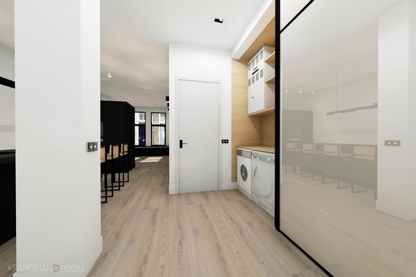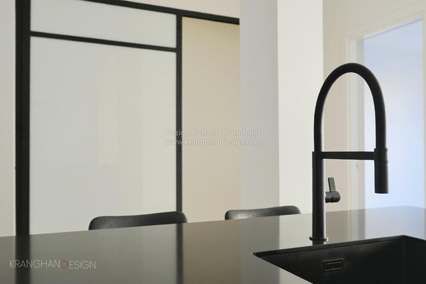 - De deuren zelf zijn van wit glas - wat een ruimtelijke effect creëert;
